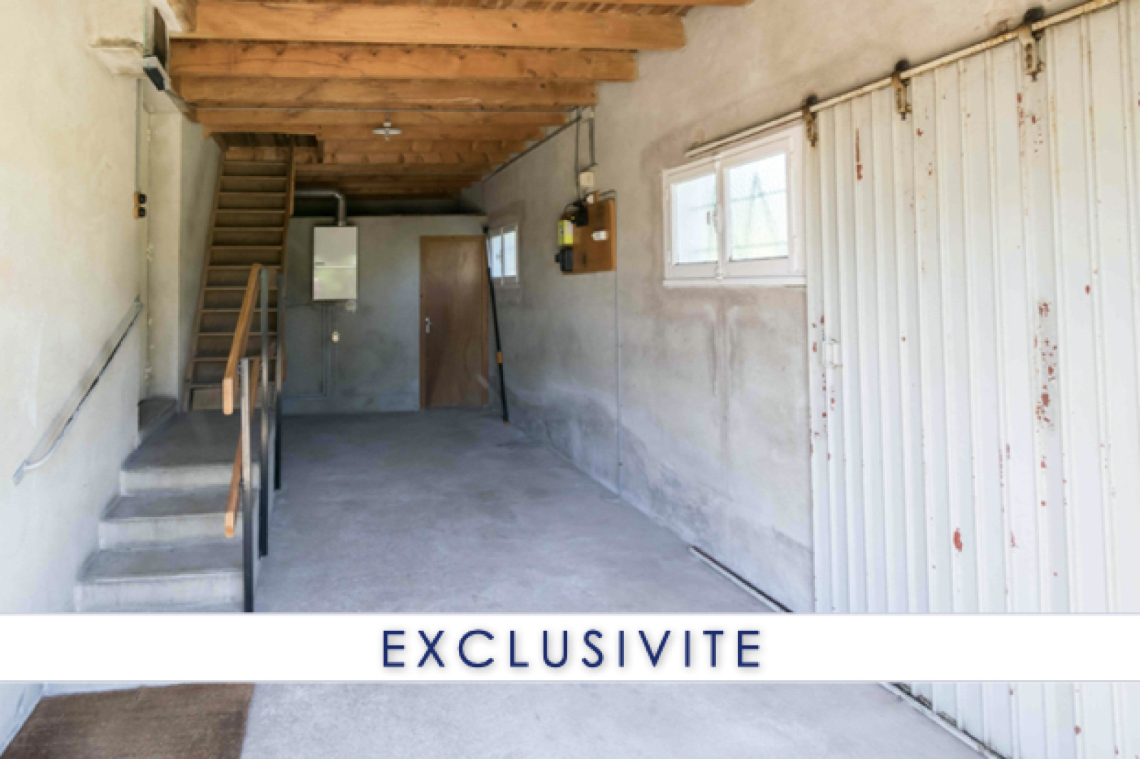 Elle dispose d'un garage attenant avec espace cave et d'un garage indépendant avec grenier au dessus.