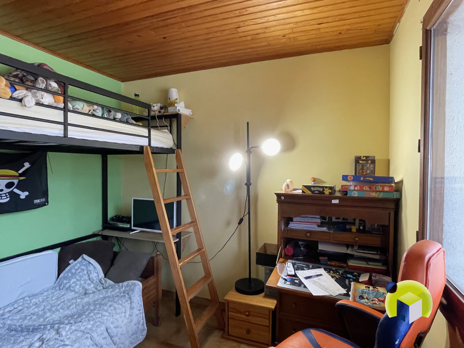 Implantée sur un terrain de 1200 m² environ, la maison est composée de deux chambres, d'un séjour, d'une cuisine indépendante, d'une salle de bains, d'un cellier, d'un débarras et d'une belle surface de combles aménageables, elle profite également d'un garage indépendant.