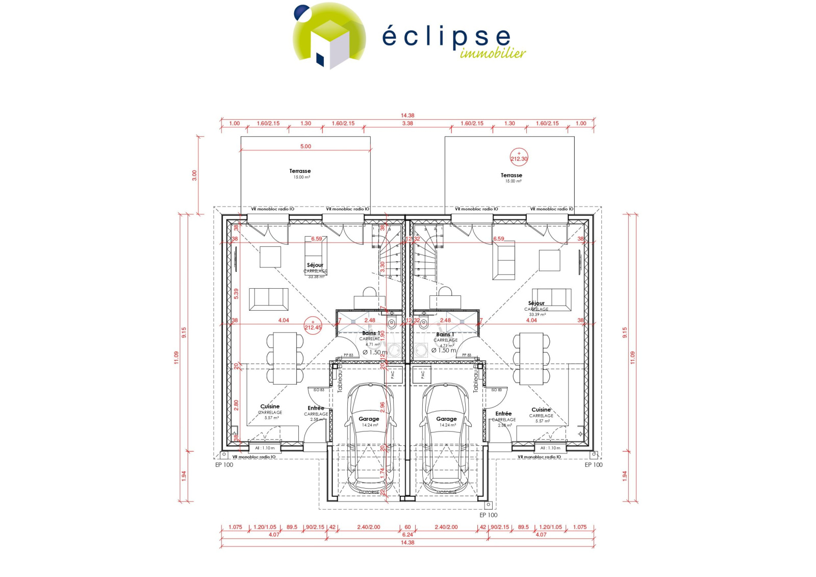 Polliat (01310)ECLIPSE IMMOBILIER vous propose à la vente un programme de 20 maisons neuves sur POLLIAT. A quelques pas du centre et des ses commodités à pied, soyez les premiers à réserver votre maison de rêve sur plan (Vente en l'état futur d'achèvement). Ce programme neuf propose 20 maisons en duplex ou plain-pied, de 2 à 4 chambres aux normes RT 2020 et PMR, la cuisine restant à votre discrétion. Chaque maison possède son terrain privatif et son garage. Le chauffage est produit par une pompe à chaleur air/eau.