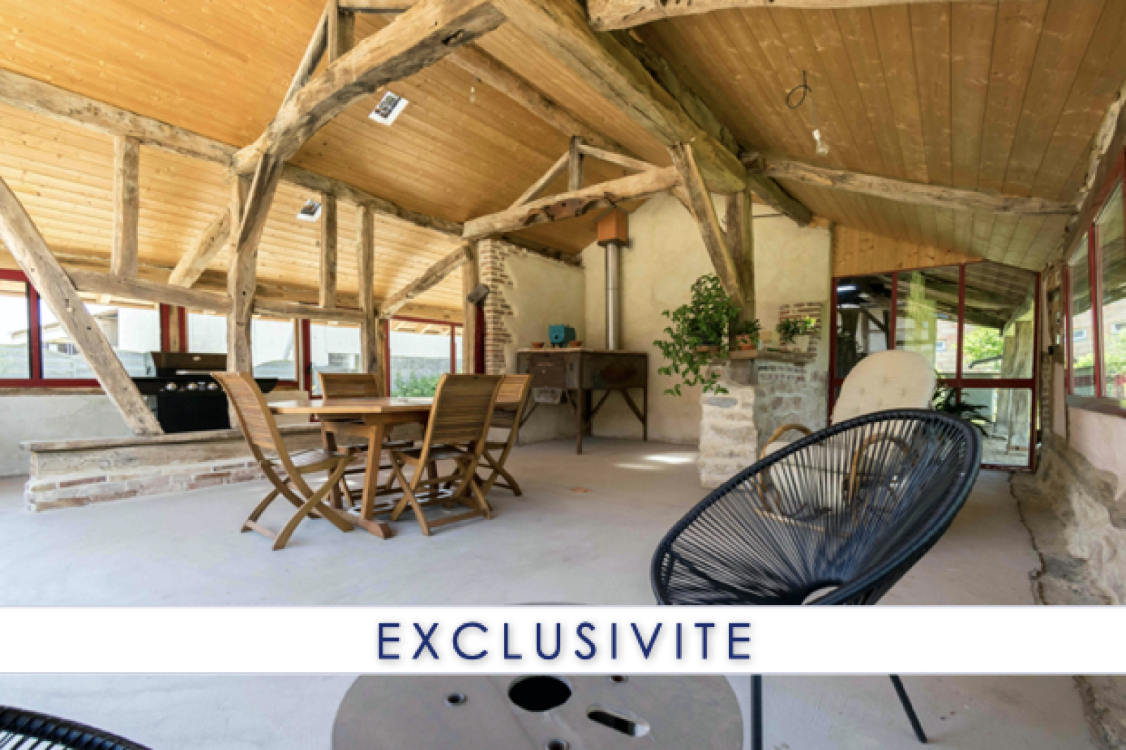 La maison dispose également d'une buanderie / chaufferie, 2 granges fermées et 2 hangars attenants.