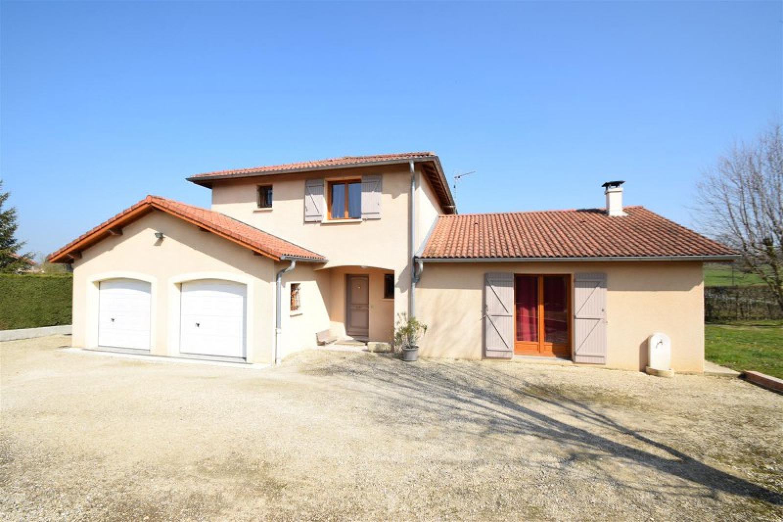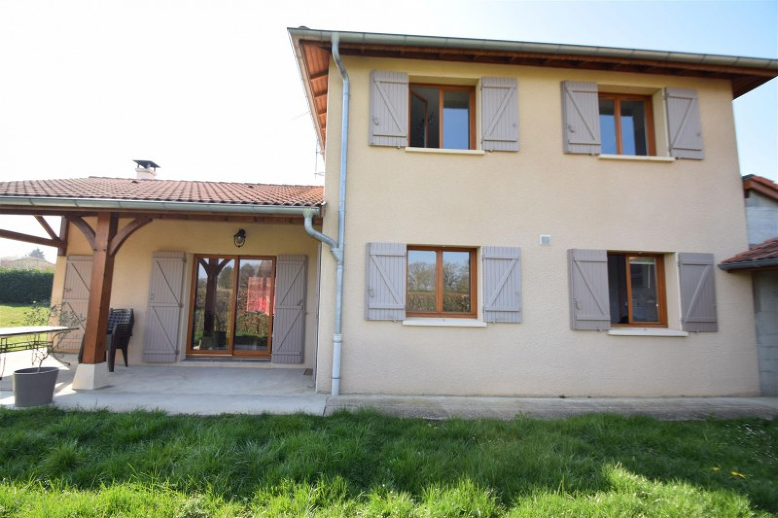 COMPROMIS DE VENTE SIGNÉ PAR ECLIPSE !!! Située à proximité de POLLIAT, sur une parcelle de 1 000 m² avec vue dégagée, venez découvrir cette maison de 114 m². Au RDC, hall d'entrée, cuisine équipée, séjour/salon avec cheminée, bureau, WC, buanderie et garage double. A l'étage, 3 grandes chambres dont une avec dressing, salle d'eau et WC. La maison dispose d'une agréable terrasse, de 2 auvents sur l'arrière et d'un atelier indépendant de 11 m².