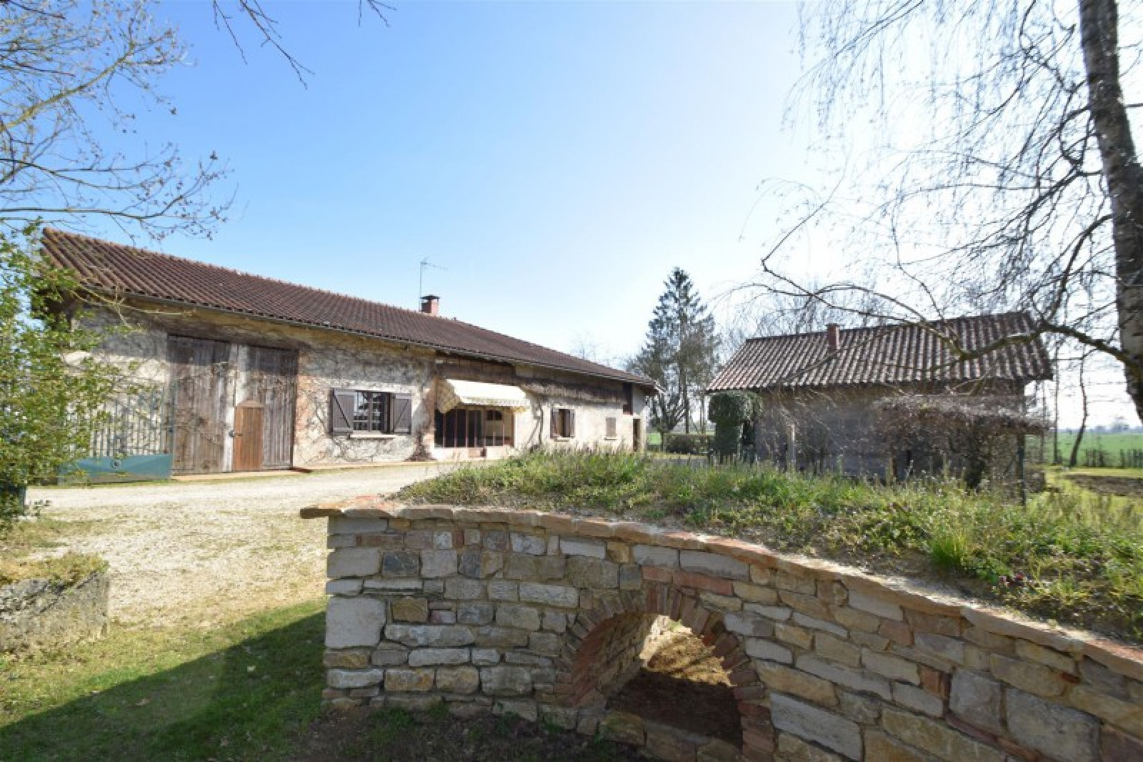 COMPROMIS SIGNÉ !!! Située à 3 km de POLLIAT, sur un terrain clos et arboré de 2 044 m²( possibilité d'extension à 3 400 m²), dans un cadre champetre, nous vous proposons de découvrir cette ferme bressane rénovée d'environ 130 m² habitables. La partie habitation est composée d'une cuisine équipée, séjour avec mezzanine, véranda, 3 chambres, salle de bains, WC et lingerie. A l'étage, les combles sont aménageables avec accès par la mezzanine. Nombreux travaux ont été réalisés, notamment chauffage par PAC, isolation en ouate de cellulose, toiture, menuiseries et assainissement individuel conforme. Coté dépendances, la ferme comprend une grange, cave, atelier, garage ouvert et four à pain.