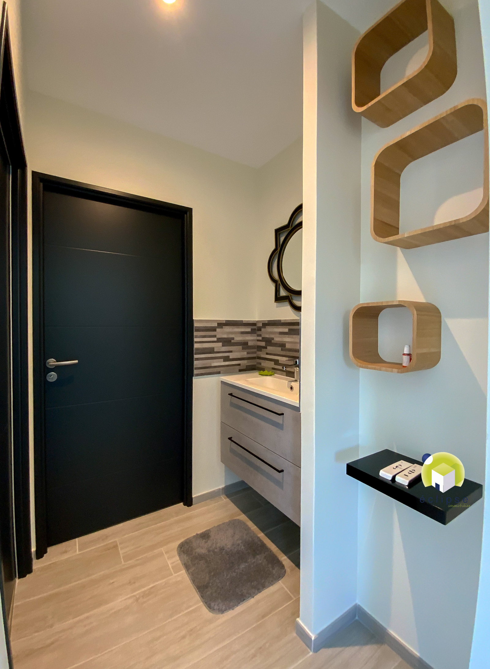 Cette villa vous offre un très vaste espace salon-séjour, une cuisine entièrement équipée, 3 chambres (dont une suite parentale) + bureau, 2 bains, 2 toilettes.