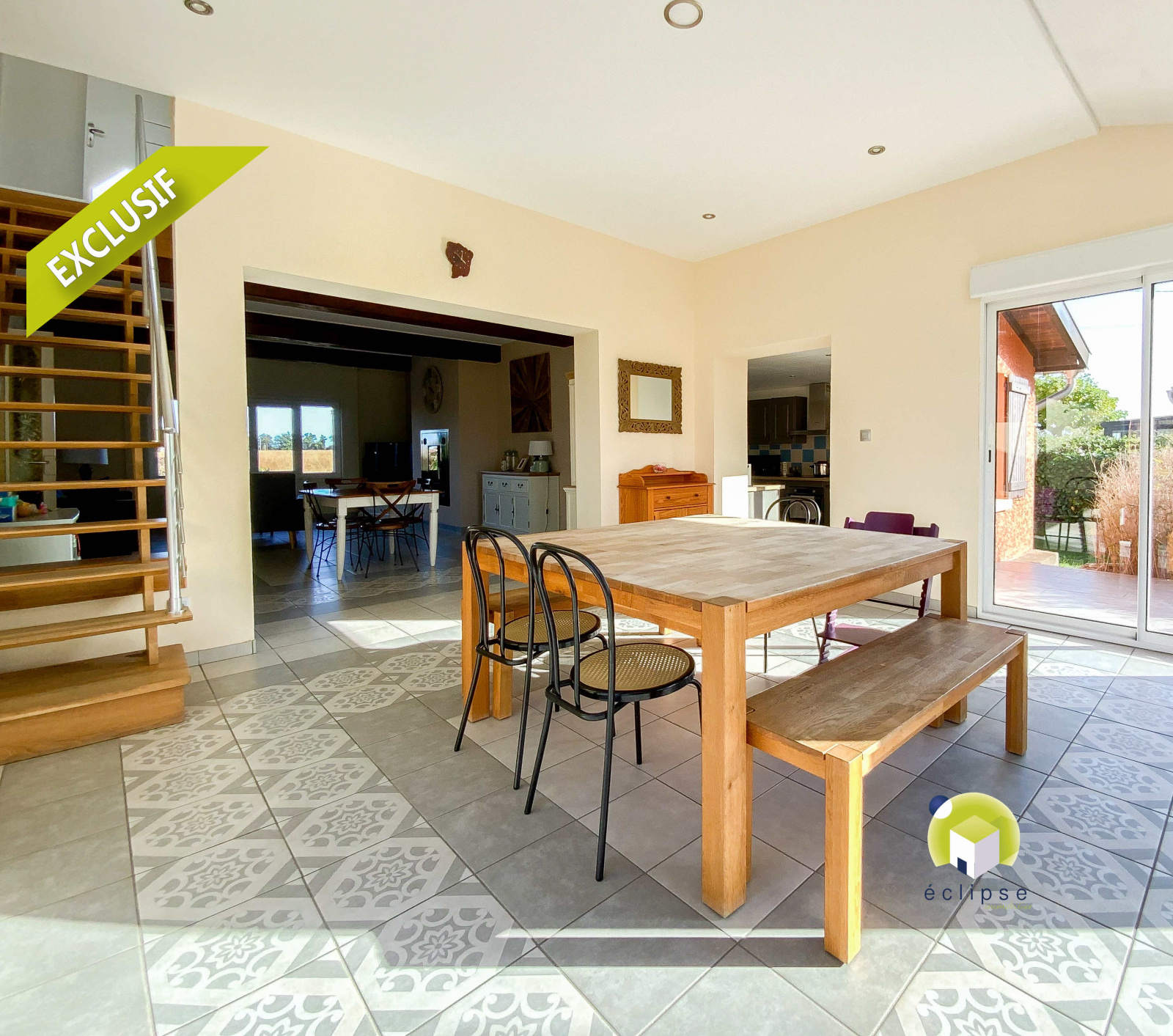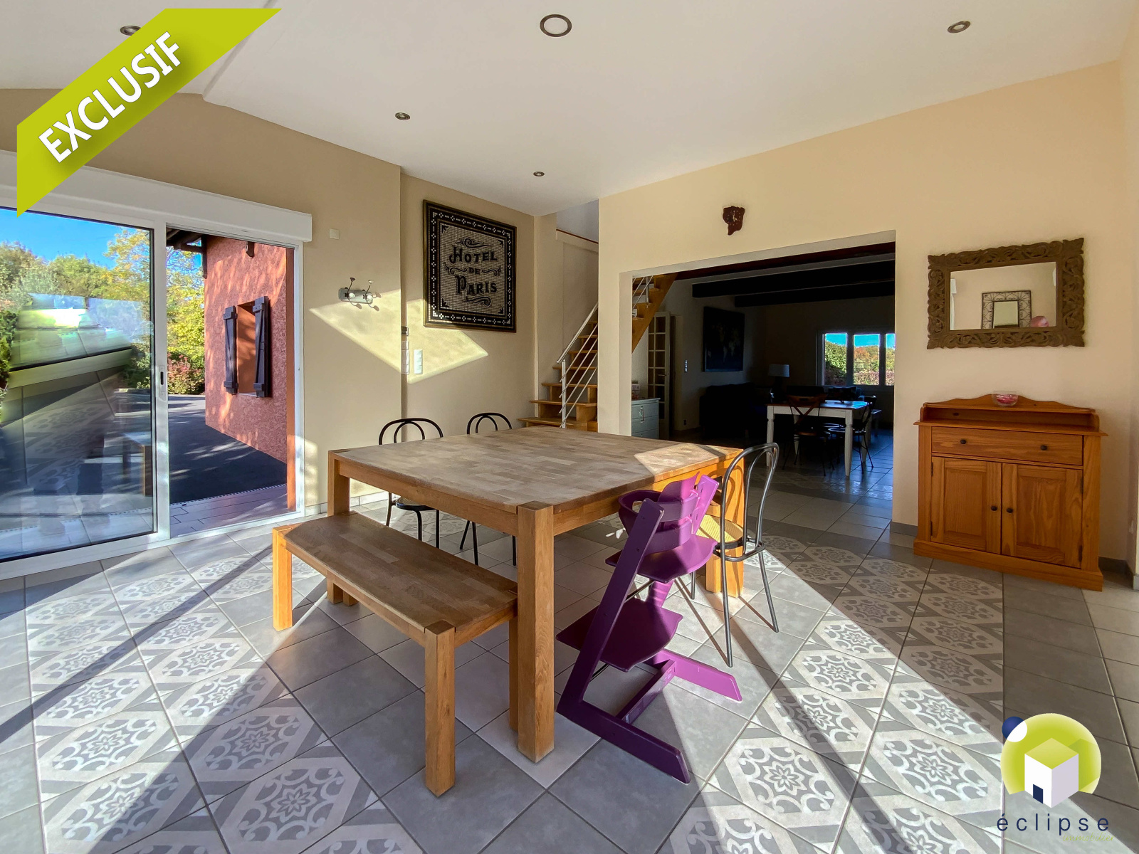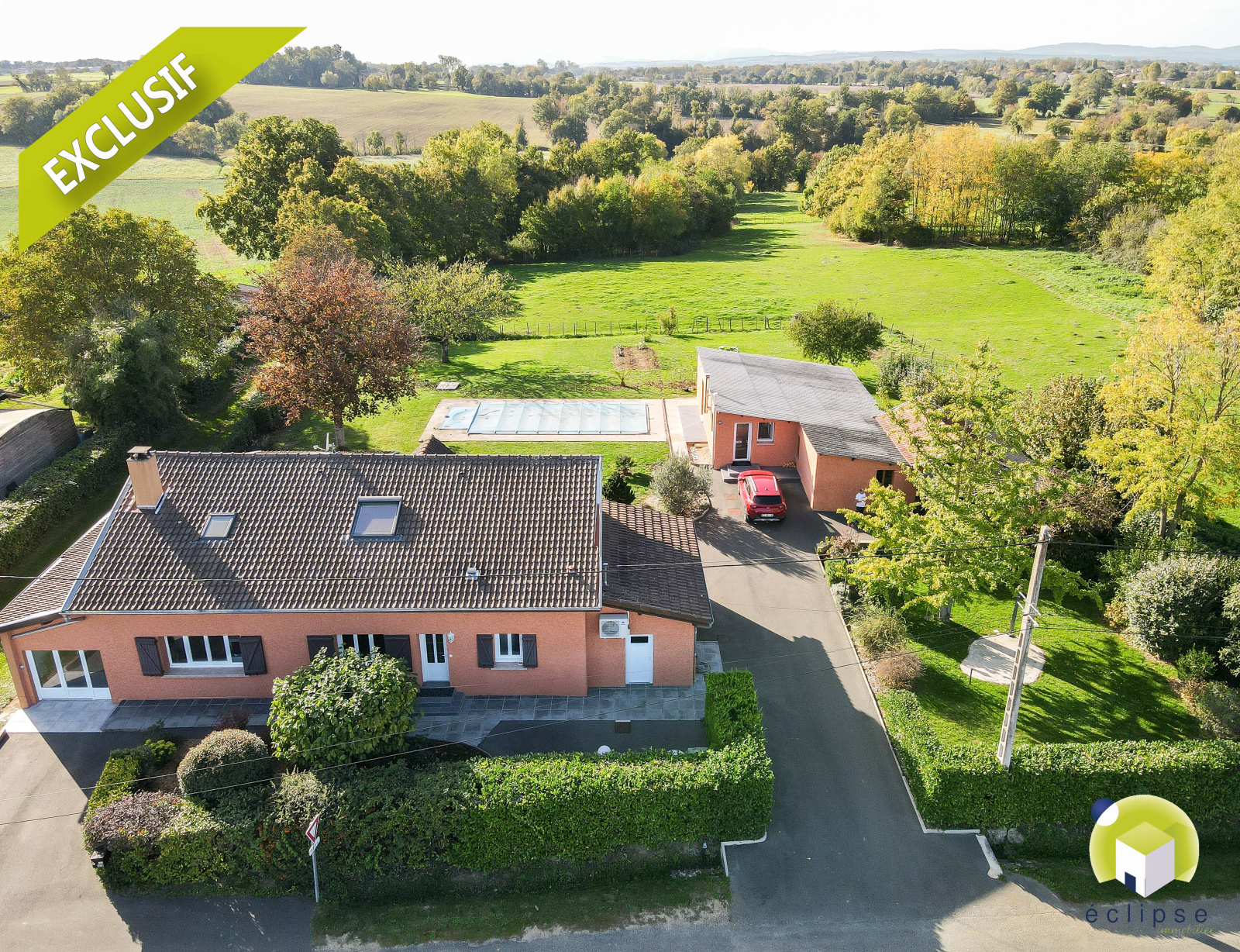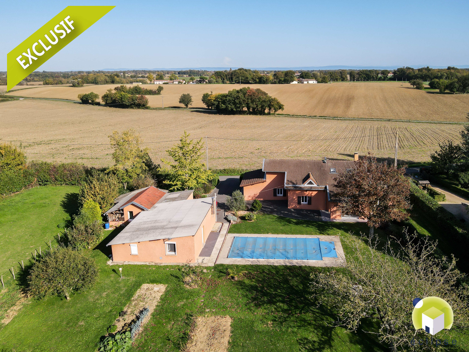 Dommartin (01380)EXCLUSIVITÉ ÉCLIPSE !!! DANS UN ENVIRONNEMENT IDÉAL : cadre bucolique, vue dégagée sur la campagne et à 14 Km de Mâcon ( Accès aux autoroutes A40 à 7 min et A6 à 15 min ), village étendue doté des écoles maternelle/primaire et collége .. Vous y retrouverez cette ferme ENTIÈREMENT RÉNOVÉE... Du CALME et de la LUMINOSITÉ pour ce bien conçu avec GOÛT et d'un ENTRETIEN IRRÉPROCHABLE ... Il se compose d'une habitation principale d'environ 216 m2 et d'un pavillon indépendant d'environ 94 m2. Sur 2 niveaux, vous disposerez: - RDC: entrée, dégagement, salon ouvert sur séjour d'environ 57 m2, cuisine semi-ouverte totalement équipée et aménagée, 2 chambres, salle d'eau, toilettes, bureau, buanderie, et 2 débarras. - A L'ÉTAGE : 2 chambres ( dont une suite avec salle d'eau et espace dressing ), toilettes et salle de jeux d'environ 50 m2 pour laisser libre cours à sa créativité ... Afin de compléter ce havre de paix, voici la maison d'amis de 90 m2 env. indépendante avec : cuisine équipée et aménagée donnant sur un séjour, un dégagement desservant 3 chambres, salle de bain, salle d'eau, toilettes, nombreux placards muraux + abri à bois attenant. Le tout sur un terrain d'environ 2 277 m2 avec piscine de 2016.