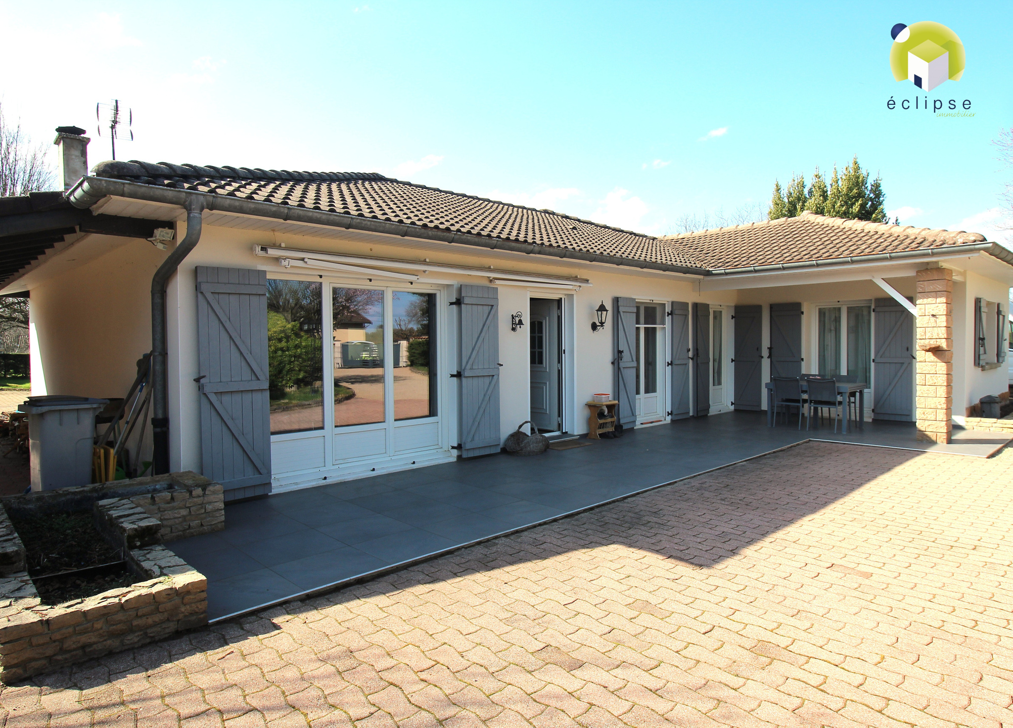 Mézériat (01660)Venez découvrir cette belle maison traditionnelle ... à seulement 3 minutes du centre de MEZERIAT. Fonctionnelle et lumineuse, d'une surface habitable d'environ 146 m2 sur vide sanitaire, elle dispose de trois chambres de 26 m2, 12,44 et 11,69 m2. Véritable havre de paix pour cette maison idéalement située sur son terrain arboré de 2 771 m2 pour plus de tranquillité. Elle dispose d'une grande pièce à vivre traversante de 50 m2 avec sa cheminée, et d'une belle cuisine attenante entièrement aménagée en décembre 2023. Salle de bain avec douche et baignoire, buanderie et toilettes. Une dépendance indépendante vient compléter le tout avec garage, atelier et cave. Un auvent de 29 m2, terrasse, un bassin d'agrément, un four à pizzas sur un terrain clos avec portail électrique et visiophone. Les menuiseries sont en PVC double vitrage, volets bois, système de chauffage par cheminée insert avec pulseur d'air et radiateurs électriques fluide caloporteur. DPE D. Aucun travaux à prévoir. Terrain constructible. Assainissement collectif.