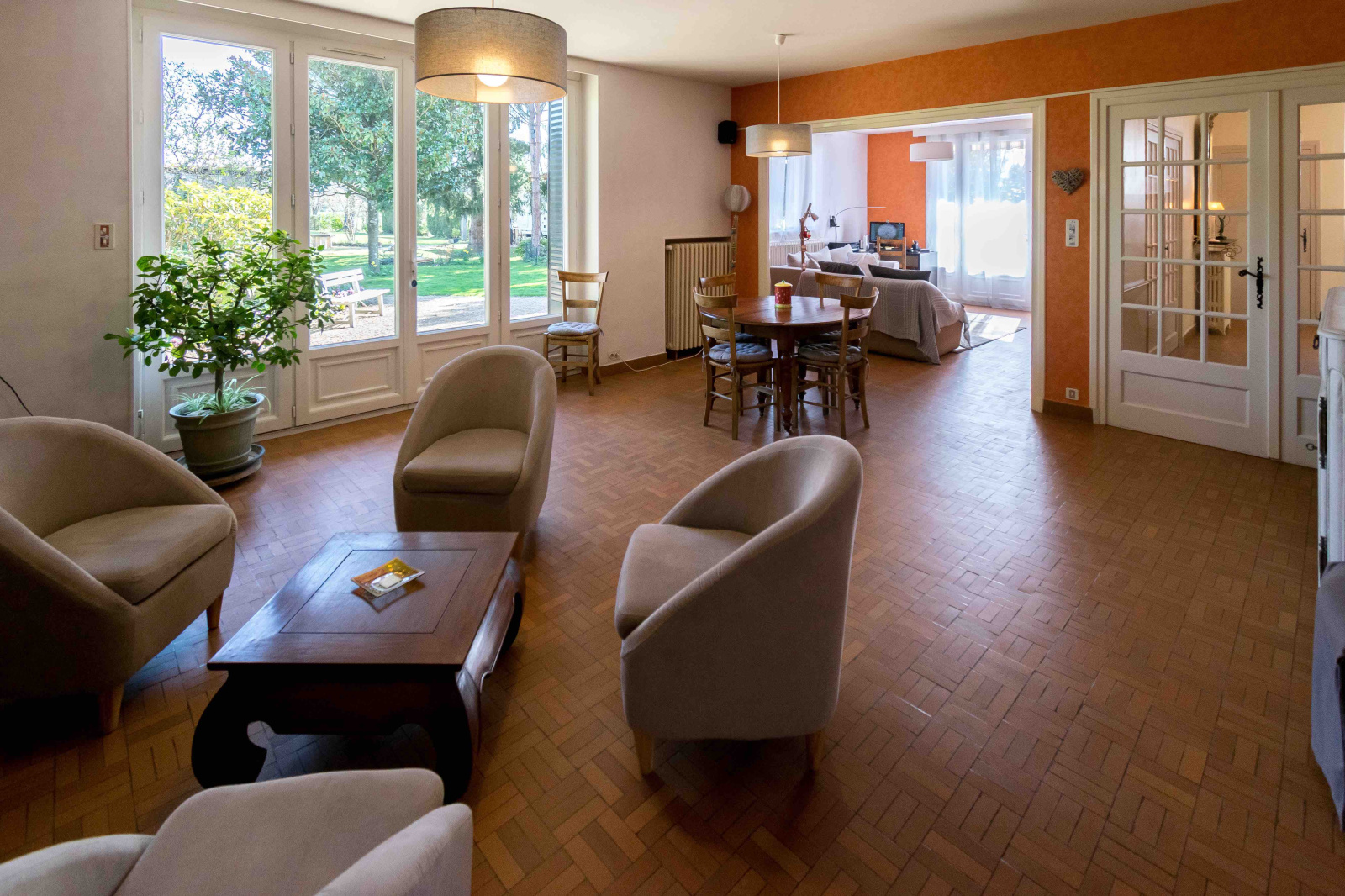 Elle comprend une grande pièce de vie donnant sur une terrasse et son parc arboré, 6 chambres (dont 1 au RDC et 4 avec avec douche ou baignoire), une cave, 3 toilettes.