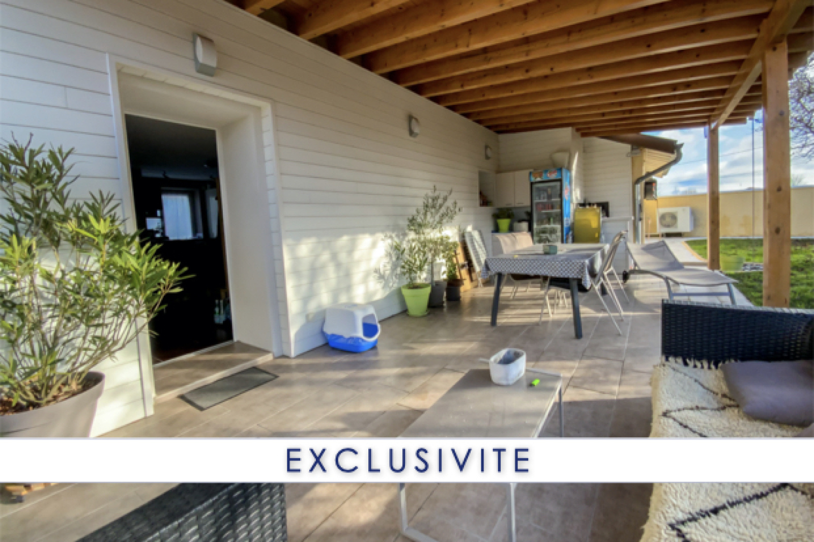 Un garage, un grenier et une pièce technique s'ajoutent à cet ensemble. Les pièces de vie déservent une terrase couverte de 37 m2 orientée Ouest.