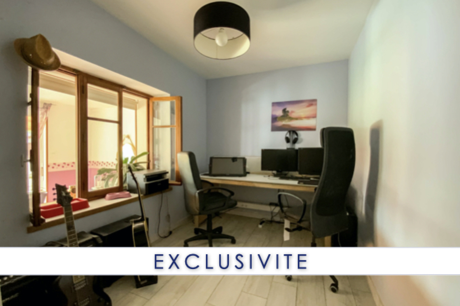 Entrée sur séjour, salon, cuisine équipée, 2 chambres + bureau, buanderie, salle de bains, toilettes.