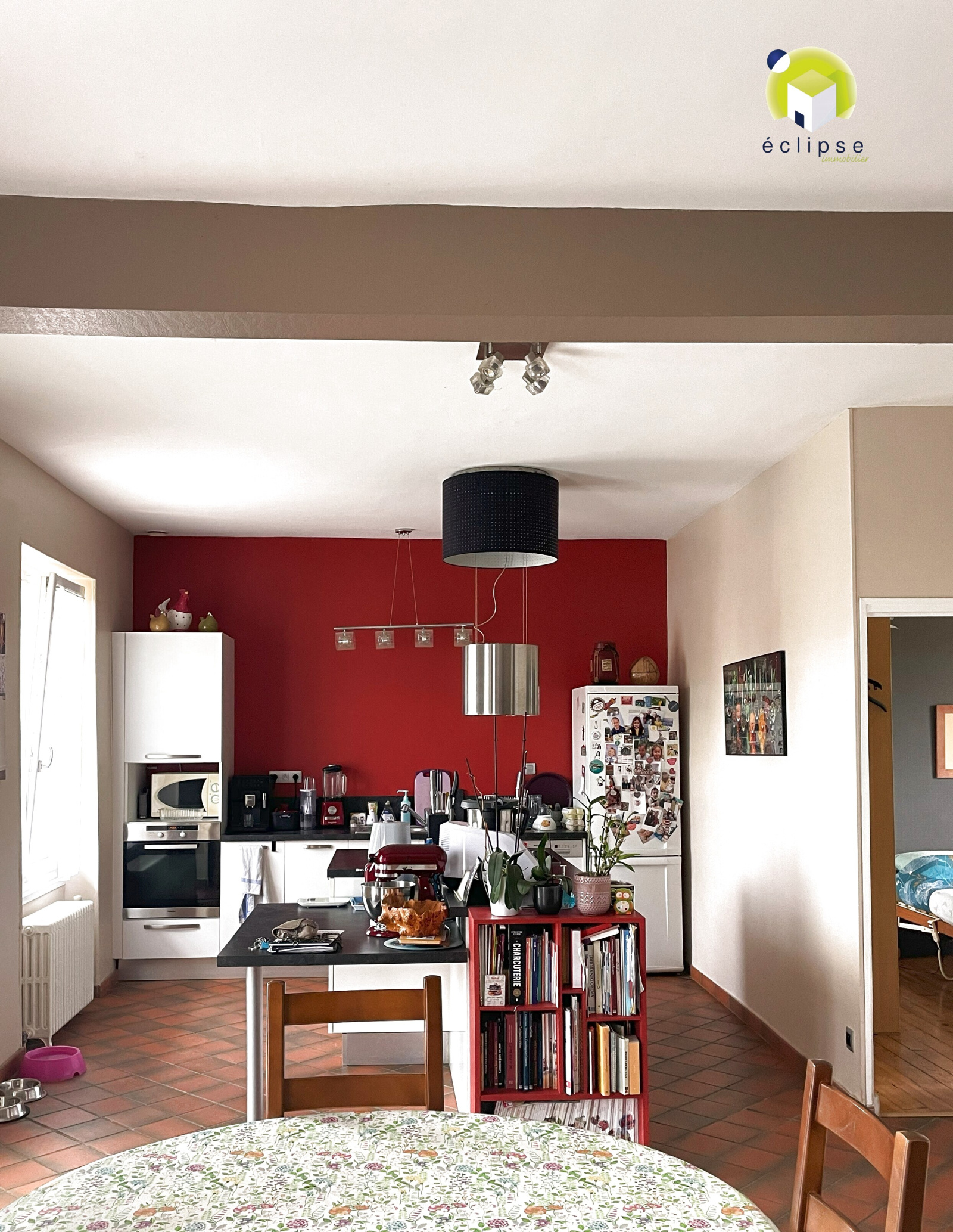 A l'étage, une belle pièce de vie lumineuse et traversante salon/séjour avec cuisine ouverte meublée et équipée, une chambre parentale avec sa salle d'eau (douche à l'italienne), et toilettes indep.