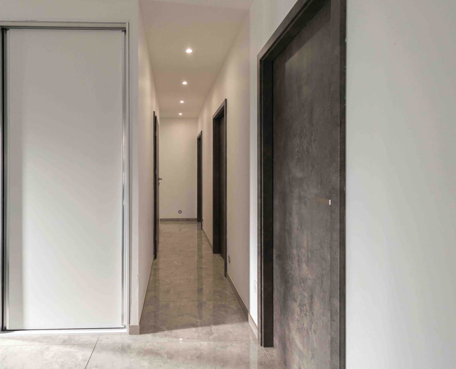 Sa surface habitable de 127 m2 comprend une entrée aménagée d'un grand placard mural, un séjour lumineux avec cuisine semi-ouverte d'environ 50 m2, 4 chambres avec placards muraux dont une suite parentale ( salle d'eau privative et dressing), une salle de bain (avec baignoire/ douche à l'italienne et des toilettes), un cellier et des toilettes.