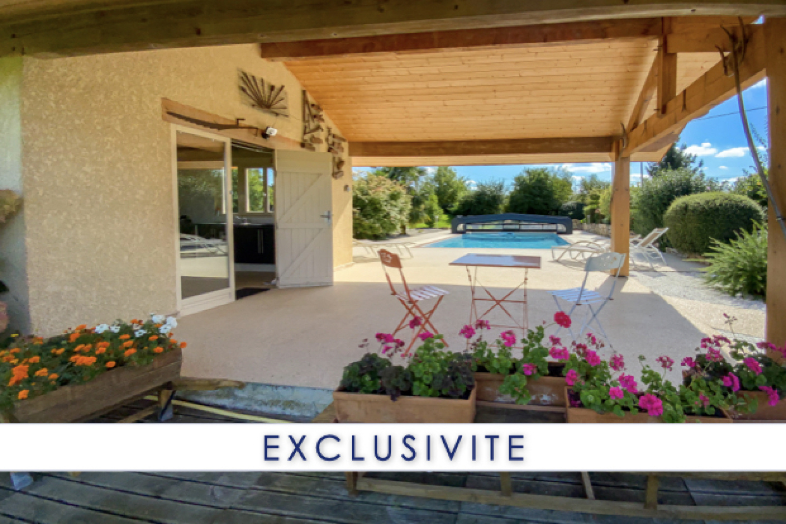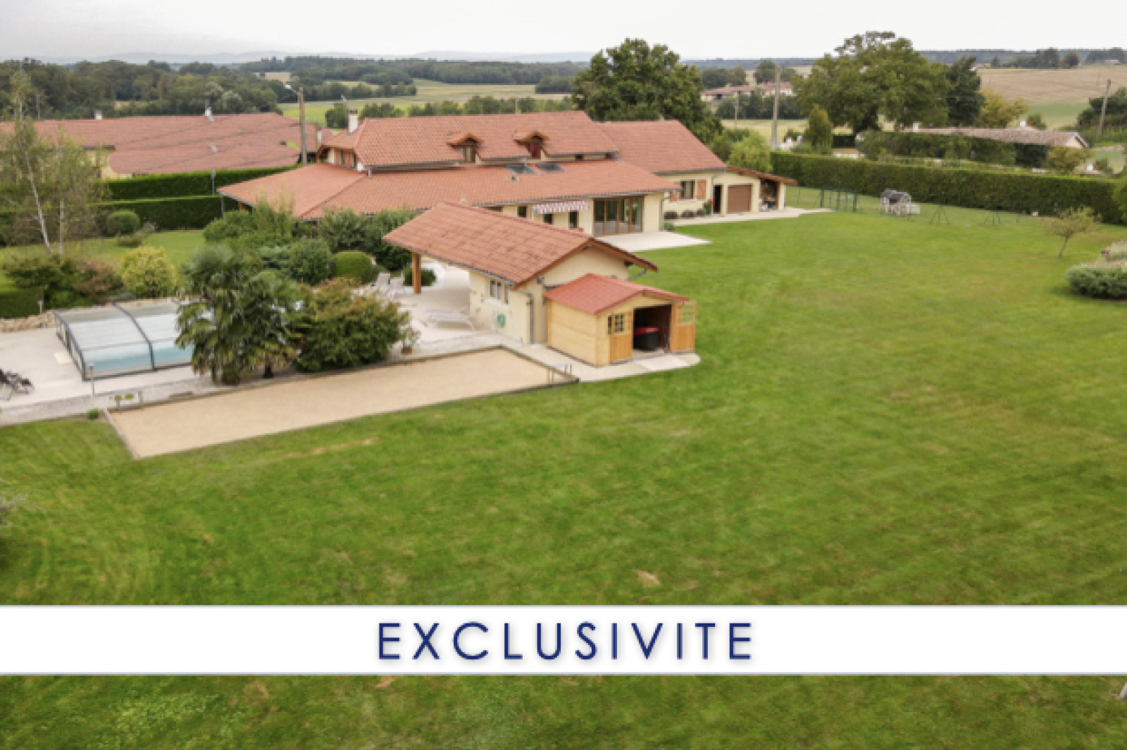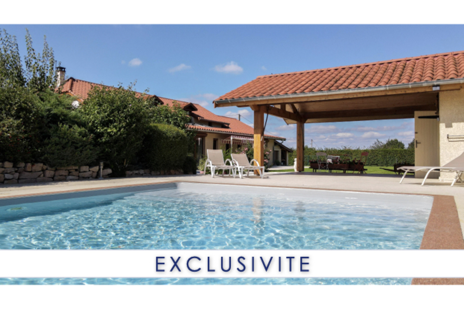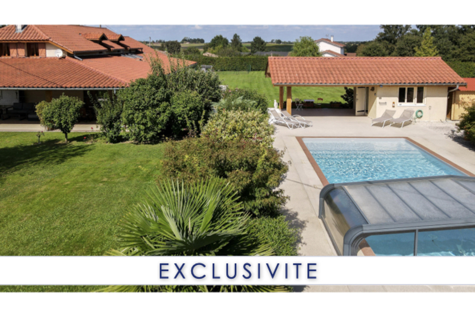 Sans vis-à-vis, vous pourrez profiter pleinement des 2 terrasses (SUD / EST), de la piscine avec auvent et de son pool-house.