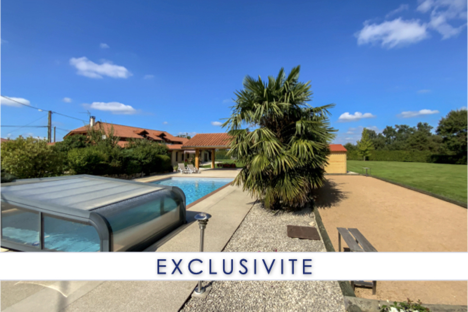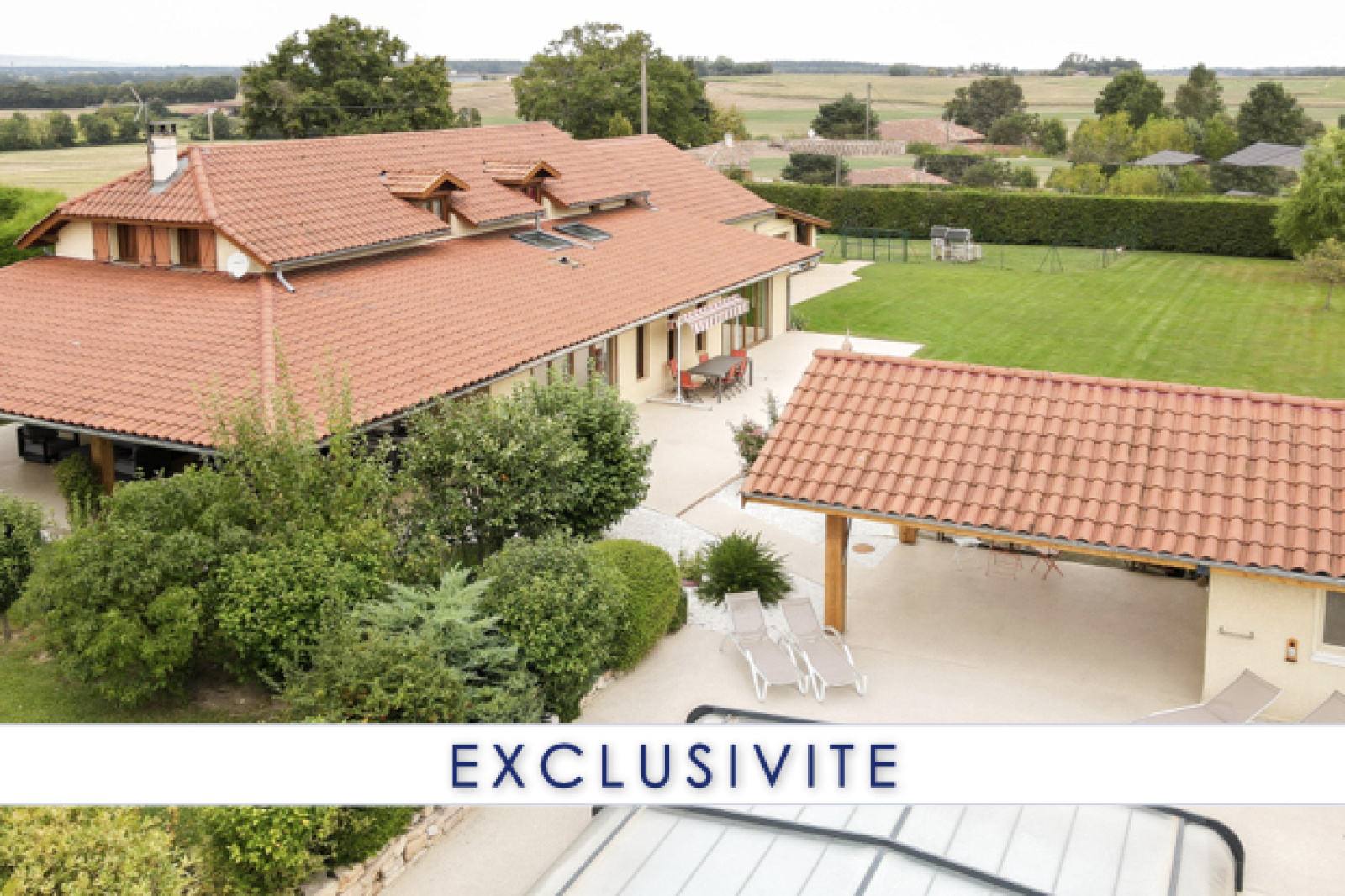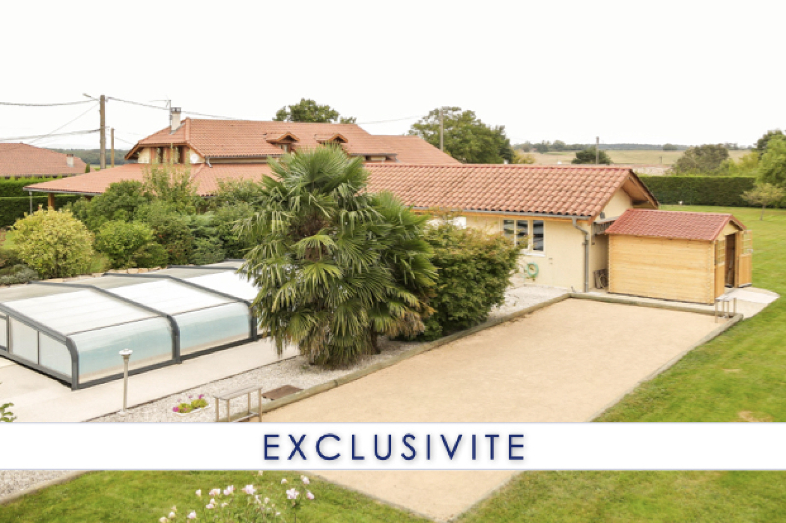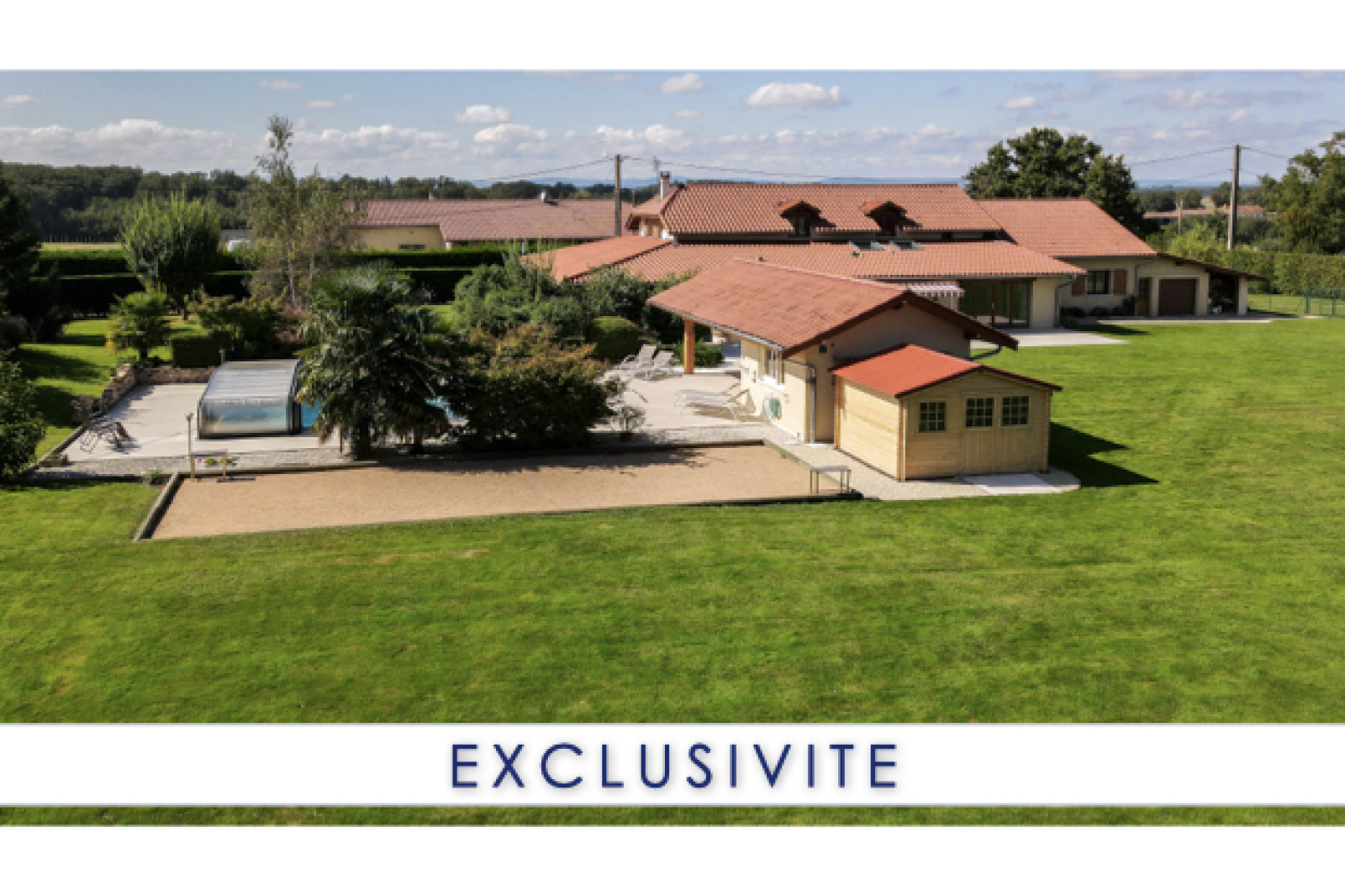 Sans vis-à-vis, vous pourrez profiter pleinement des 2 terrasses (SUD / EST), de la piscine avec auvent et de son pool-house.