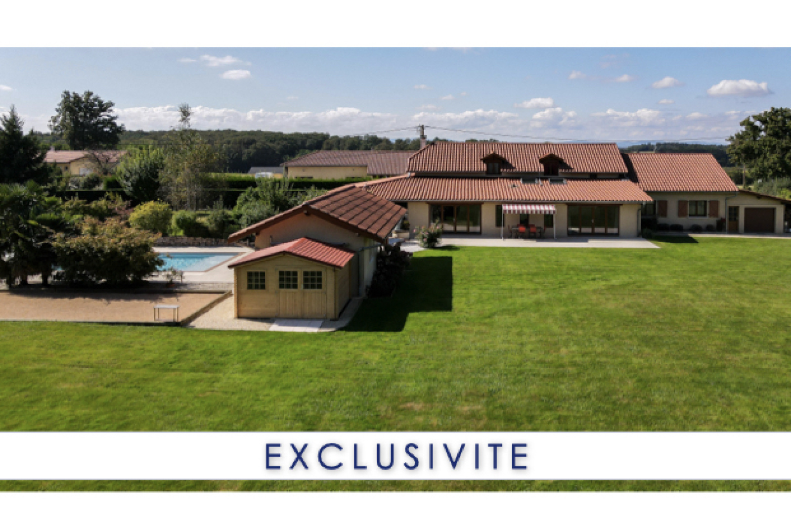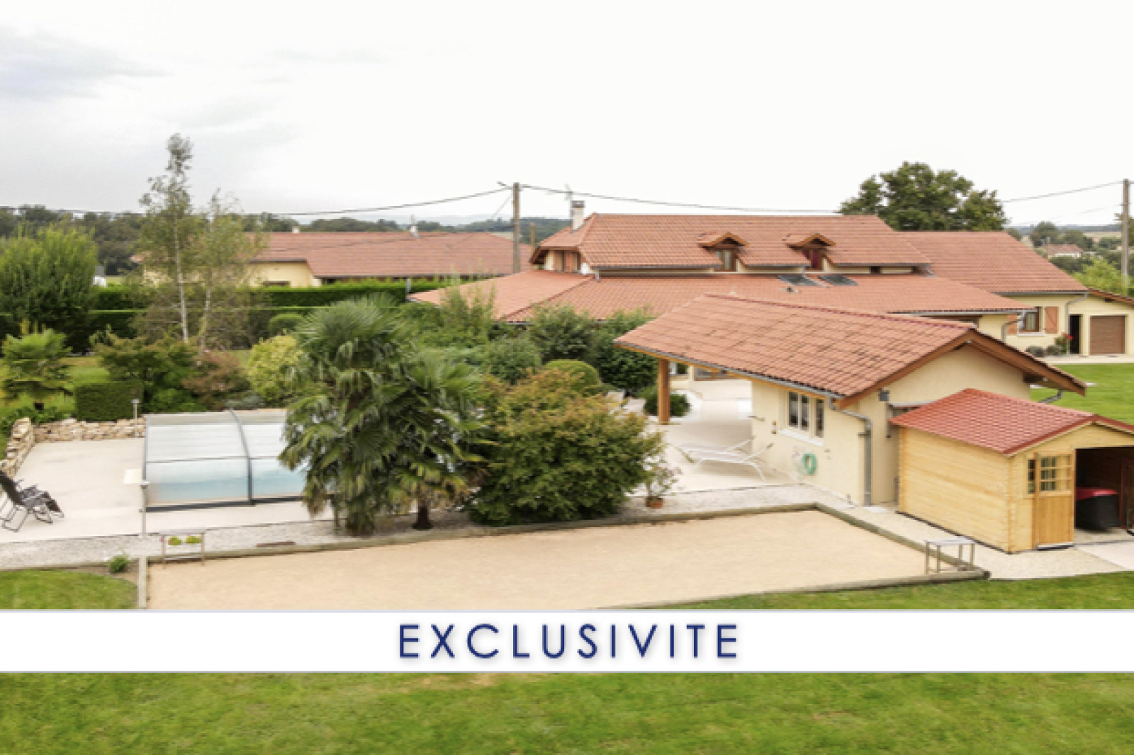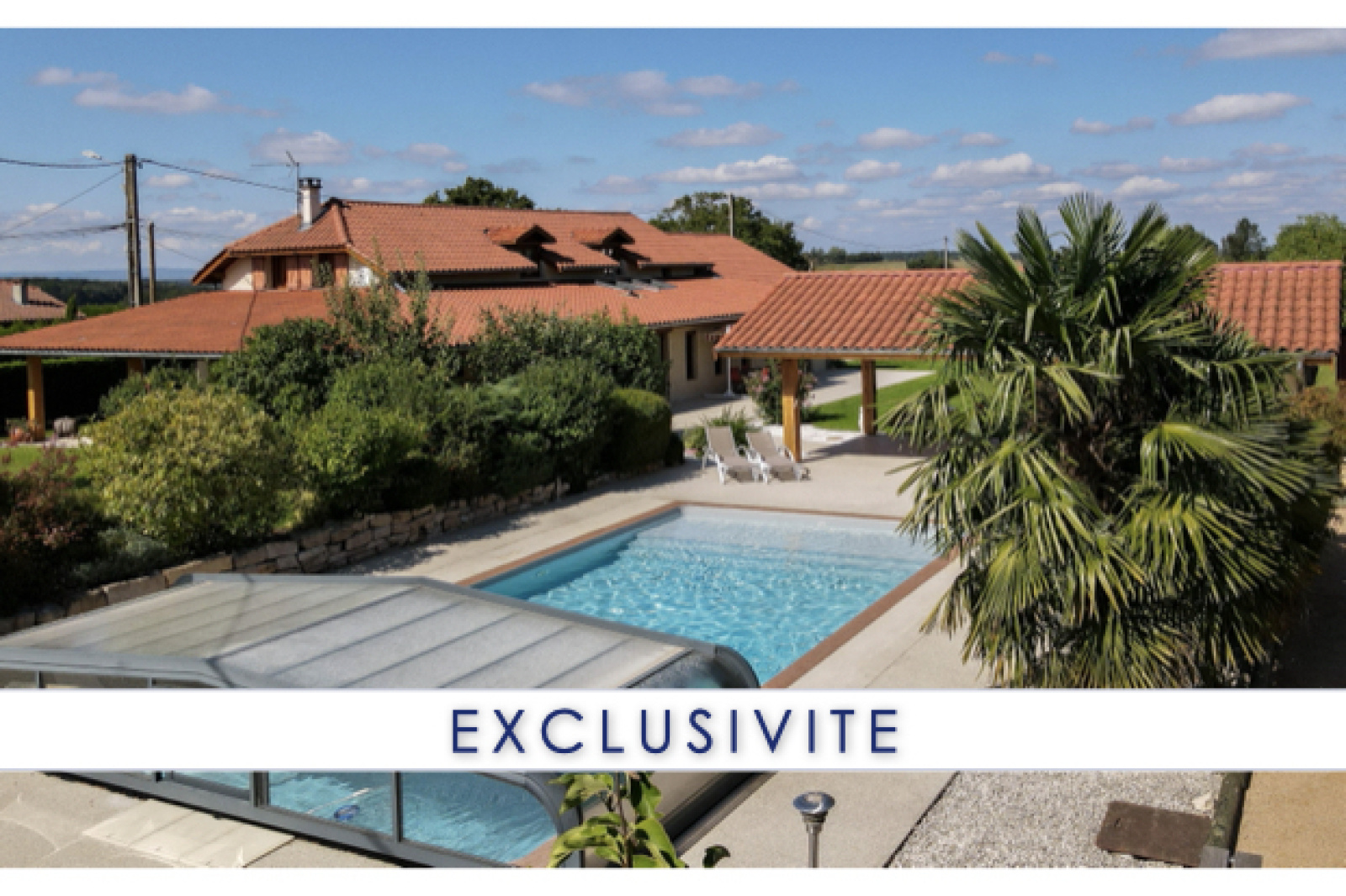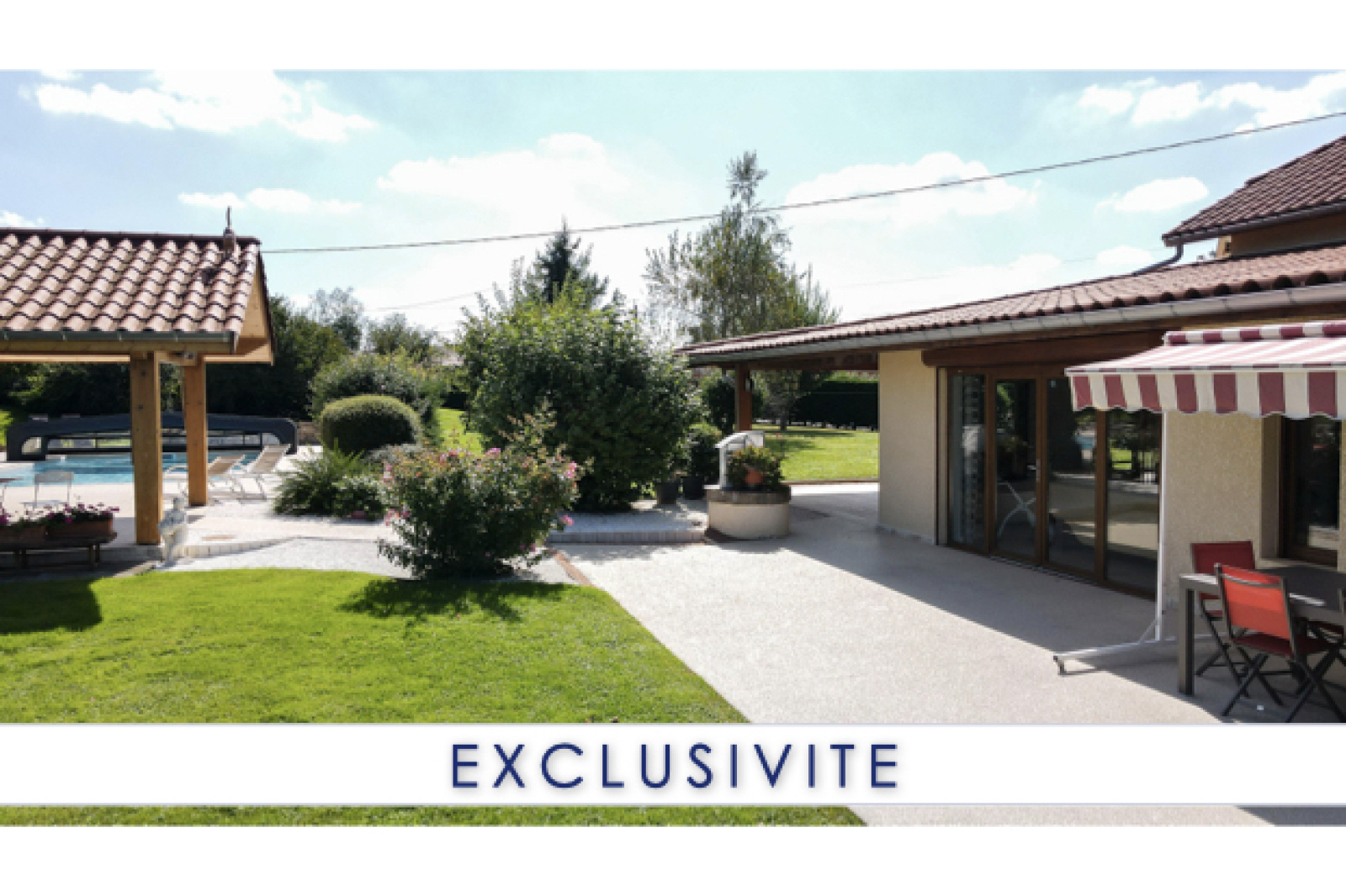 Sans vis-à-vis, vous pourrez profiter pleinement des 2 terrasses (SUD / EST), de la piscine avec auvent et de son pool-house.