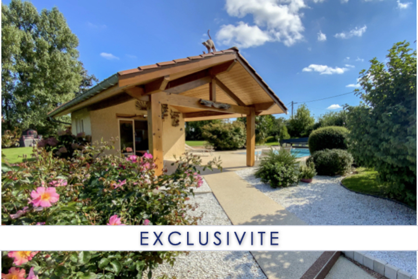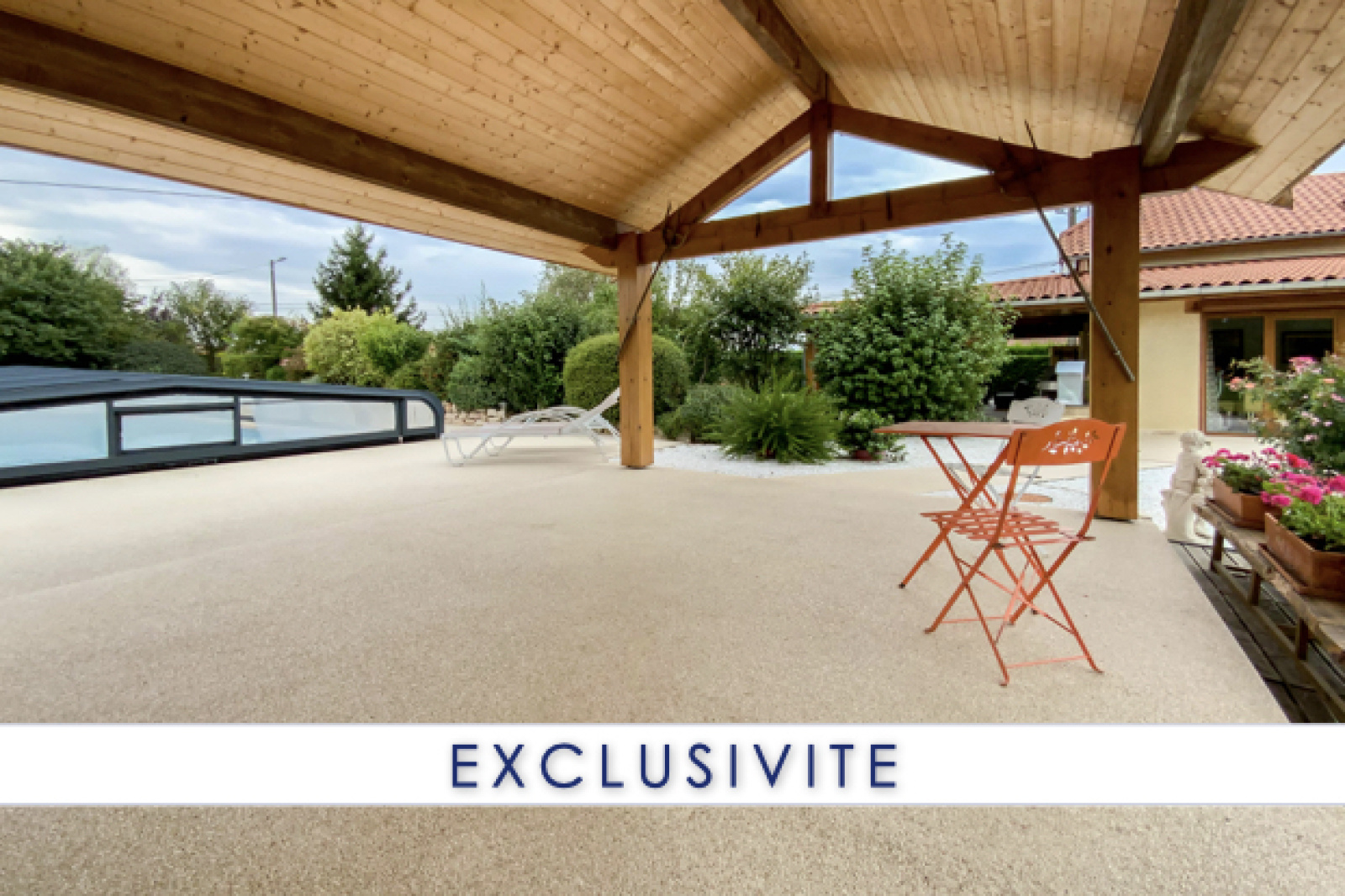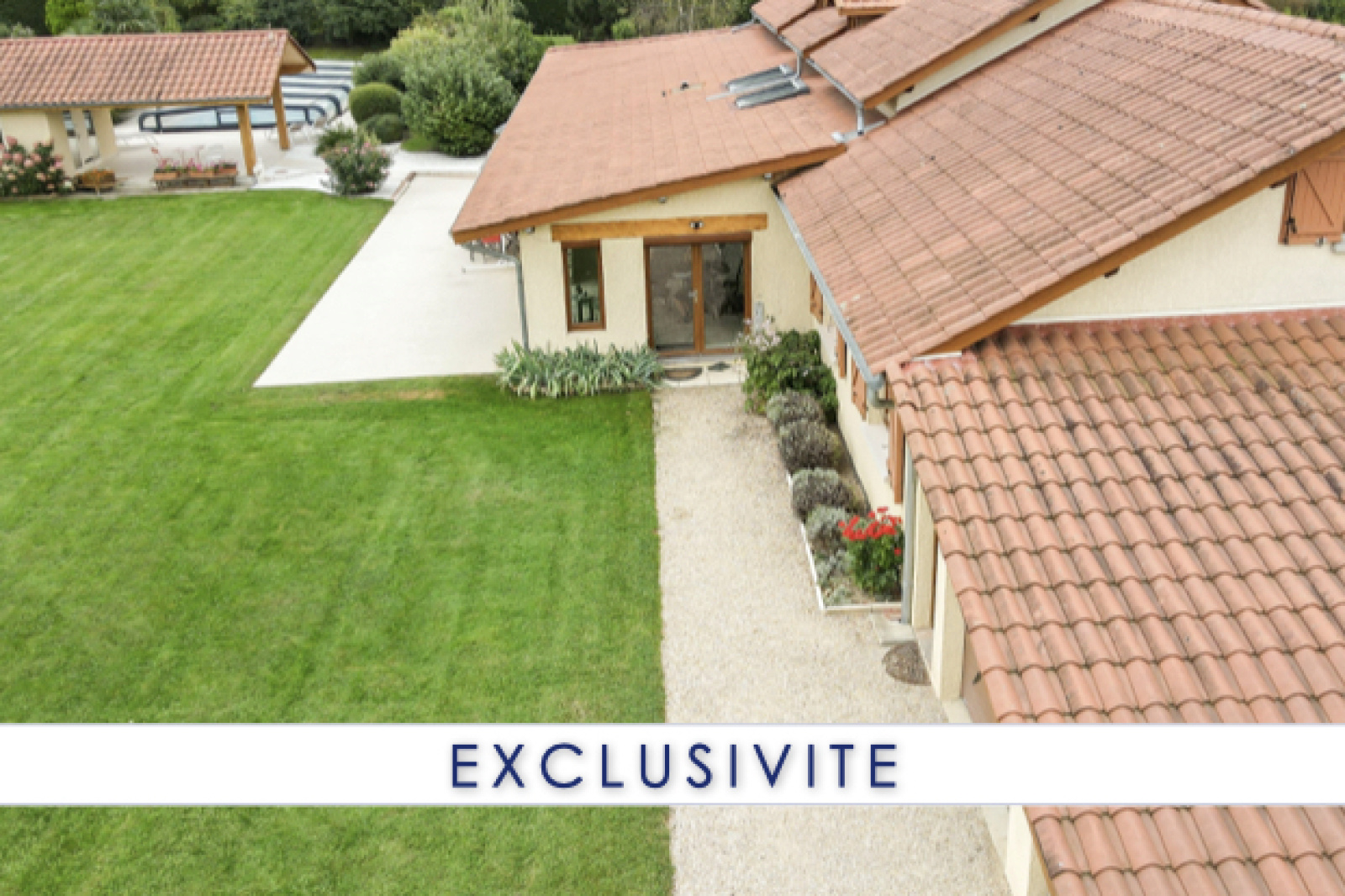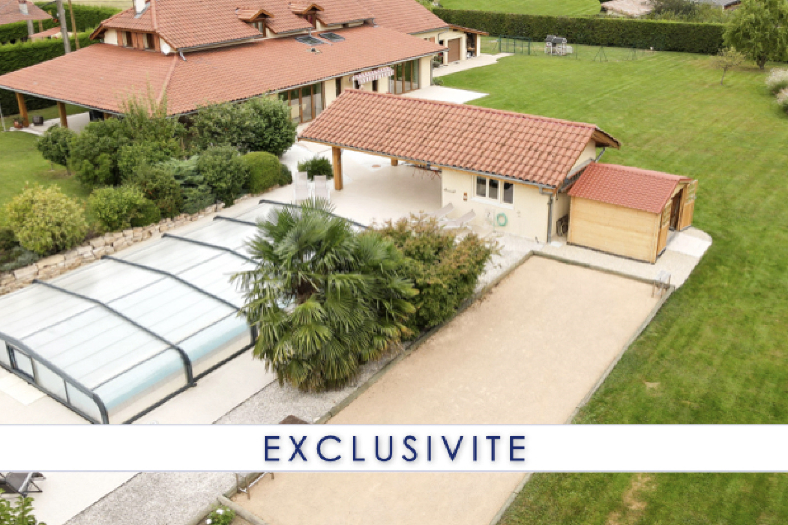Sans vis-à-vis, vous pourrez profiter pleinement des 2 terrasses (SUD / EST), de la piscine avec auvent et de son pool-house.