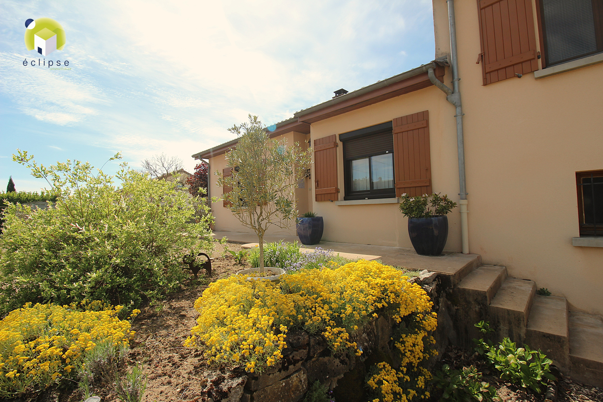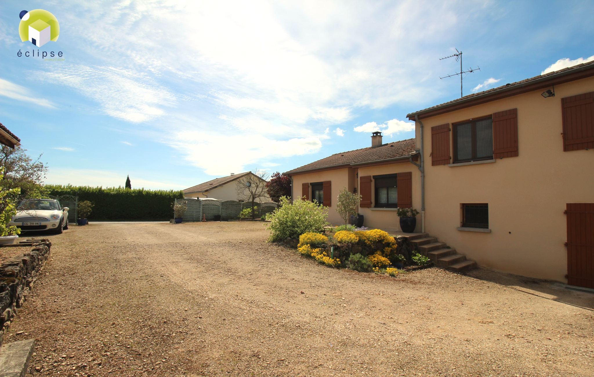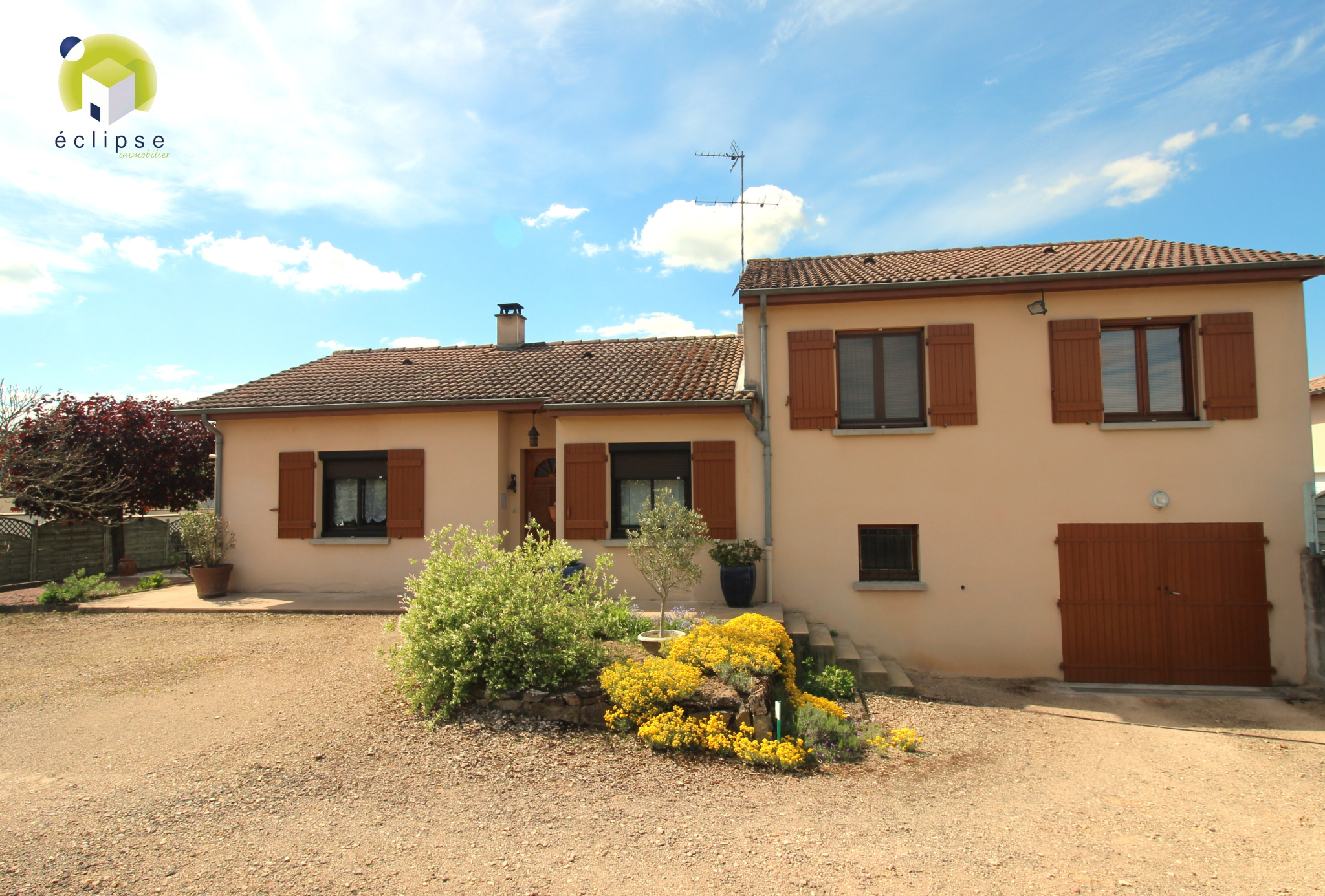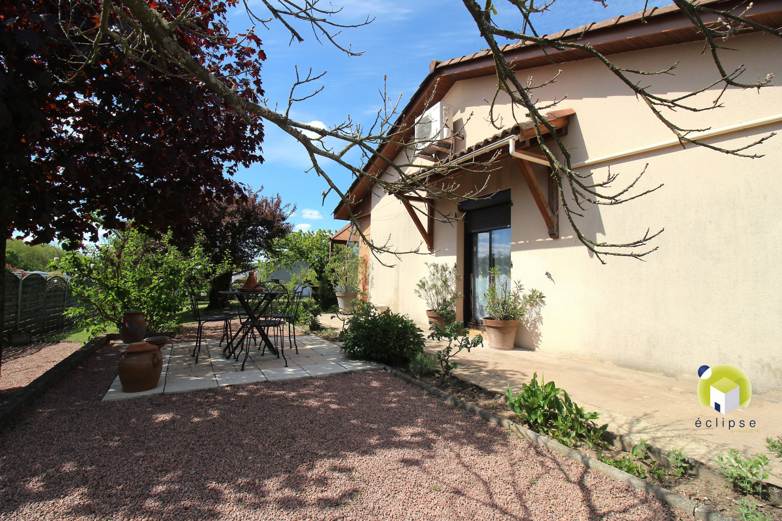 Replonges (01750)Exclusivité ECLIPSE IMMOBILIER !!! Sur la paisible commune de Replonges, située à 10 min. de Mâcon et ses deux gares, desservie par les autoroutes A 40 et A 406. Elle se situe à 5 min. à pieds des nombreux commerces du centre du village. Bâtie en 1990 par un constructeur local, elle a été très bien entretenue par ses propriétaires. Nichée sur une parcelle de terrain constructible de 1 331 m2. ( possibilité de division parcellaire ). Bénéficiant d'un séjour agréable avec cuisine ouverte, s'ouvrant avec baie vitrée à galandage sur une varangue orientée à l'Ouest pour une belle luminosité naturelle... Elle se compose d'une entrée, un bureau de 6,55 m2 avec possibilité de l'agrandir si besoin, une pièce à vivre avec cheminée et cuisine ouverte entièrement aménagée et équipée et une varangue. Sur un deuxième niveau vous trouverez trois chambres dont une avec salle de bain privative, une salle d'eau avec toilettes, un deuxième toilettes séparés. Le bien dispose également d'une terrasse, d'un demi sous-sol avec garage, un atelier, une chaufferie et une cave.