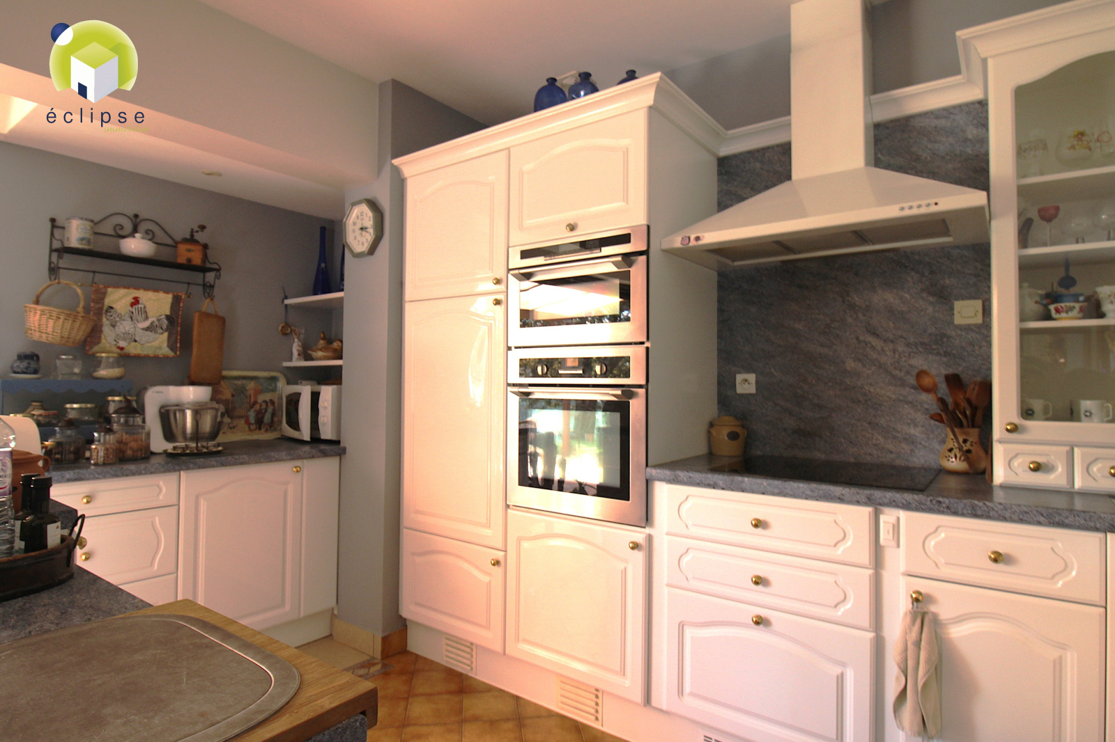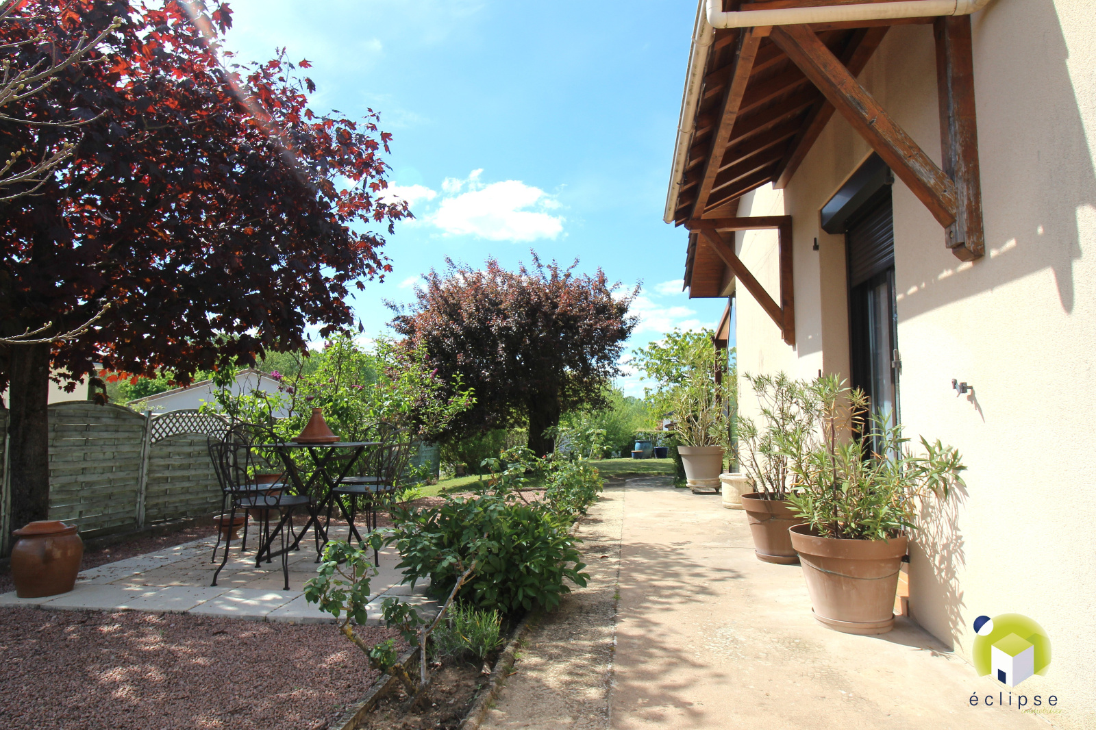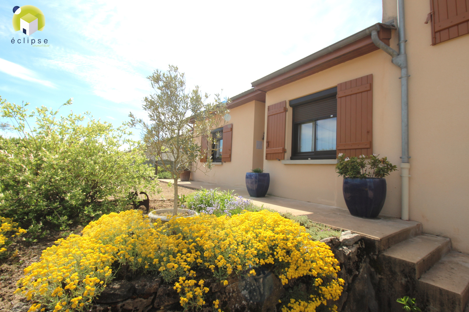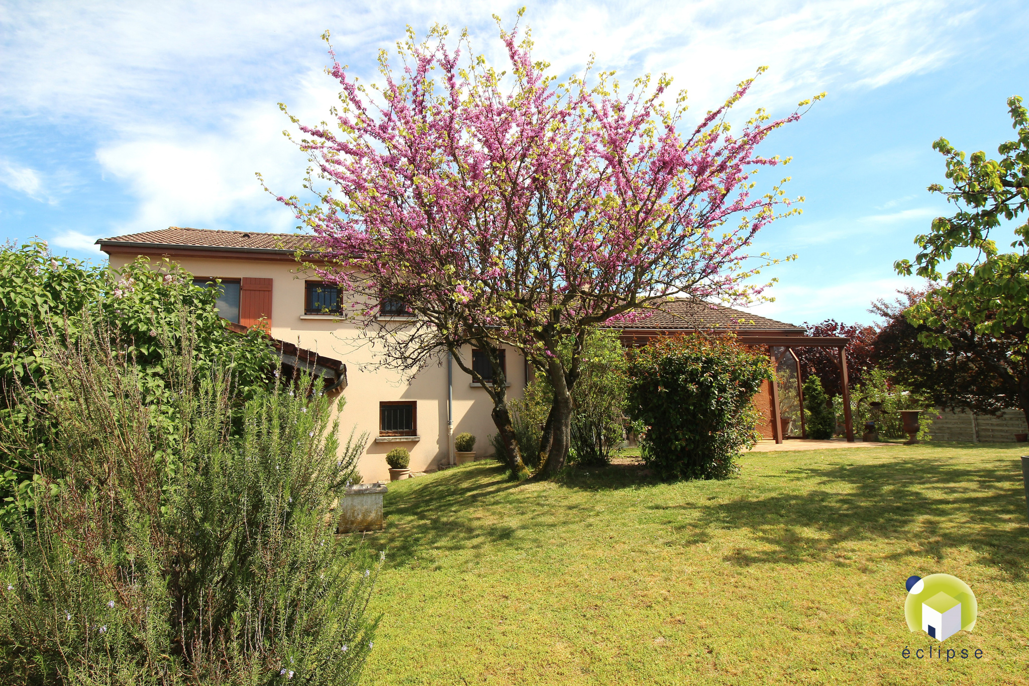 Replonges (01750)Exclusivité ECLIPSE IMMOBILIER !!! Sur la paisible commune de Replonges, située à 10 min. de Mâcon et ses deux gares, desservie par les autoroutes A 40 et A 406. Elle se situe à 5 min. à pieds des nombreux commerces du centre du village. Bâtie en 1990 par un constructeur local, elle a été très bien entretenue par ses propriétaires. Nichée sur une parcelle de terrain constructible de 1 331 m2. ( possibilité de division parcellaire ). Bénéficiant d'un séjour agréable avec cuisine ouverte, s'ouvrant avec baie vitrée à galandage sur une varangue orientée à l'Ouest pour une belle luminosité naturelle... Elle se compose d'une entrée, un bureau de 6,55 m2 avec possibilité de l'agrandir si besoin, une pièce à vivre avec cheminée et cuisine ouverte entièrement aménagée et équipée et une varangue. Sur un deuxième niveau vous trouverez trois chambres dont une avec salle de bain privative, une salle d'eau avec toilettes, un deuxième toilettes séparés. Le bien dispose également d'une terrasse, d'un demi sous-sol avec garage, un atelier, une chaufferie et une cave.