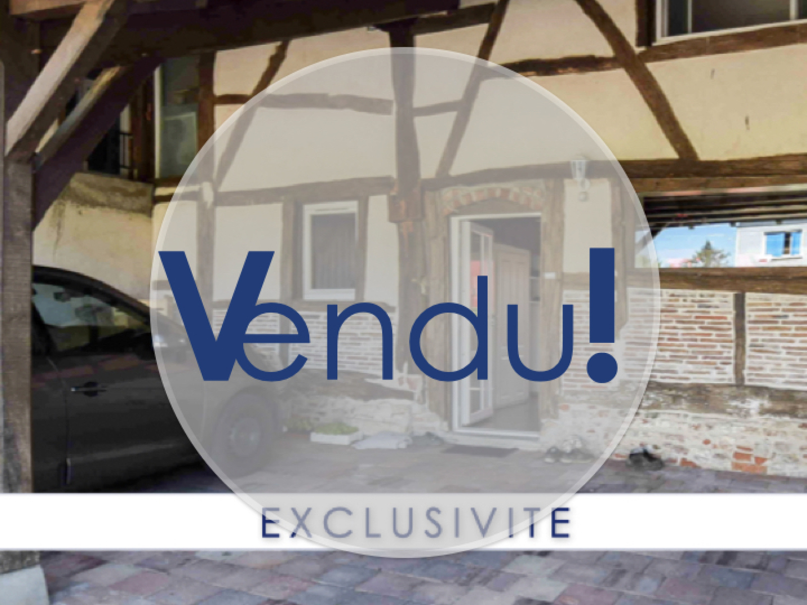 Véhicules abrités devant la maison.